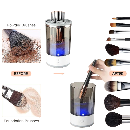 Powerful rotation removes makeup residue, oils, and dirt from every bristle in seconds.